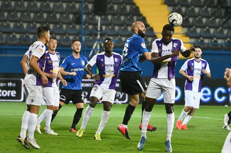 Bucurie a fotbalistilor de la Viitorul cu Virgil Eugen Ghita si Kevin Luckassen dupa un gol marcat in meciul de fotbal dintre FC Viitorul Constanta si Astra Giurgiu, contand pentru Liga 1 Casa Pariurilor, desfasurat fara spectatori pe Stadionul Central al Academiei Gheorghe Hagi din Ovidiu, sambata 26 septembrie 2020. © FOTO:Razvan Pasarica/SPORT PICTURES