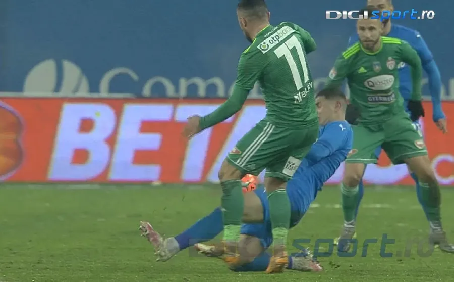 În minutul 81, Screciu s-a văzut eliminat de centralul partidei, după o intrare întârziată într-o zonă neutră a terenului, asupra lui Aganovic (VIDEO AICI)