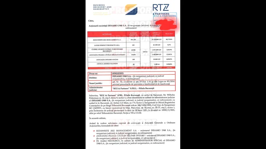 În acest context, așa cum ProSport a anunțat în exclusivitate, administratorul judiciar a convocat Adunarea Generală a Acționarilor pentru ziua de luni, 30 iulie, prin care a înaintat și propunerilor membrilor, președintelui și vicepreședintelui noului consiliu de administrație.