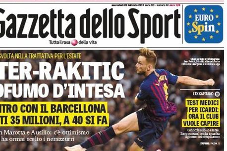 Afacerea dintre Barcelona și gruparea nerazzurra s-ar putea face contra sumei de 35 de milioane de euro. Potrivit site-ului gazzetta.it, catalanii vor 45 de milioane pe Rakitic, iar italienii se gânndesc că suma va fi acoperită cu bonusuri.