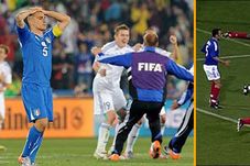 În urmă cu 4 ani, în Africa de Sud, Italia avea aceeași soartă ca și formația lui Del Bosque. Venită din postura de campioană mondială în exercițiu, squadra azzurra a avut parte de o grupă relativ ușoară, însă a eșuat lamentabil. Italienii au debutat cu două egaluri – cu Paraguay și Noua Zeelandă -, pentru ca în partida decisivă pentru calificarea în optimi să piardă, scor 3-2, în fața Slovaciei. În ceea ce îi privește pe francezi, aceștia au simțit pe pielea lor cât de mare este presiunea pe o campioană mondială în 2002. După ce au impresionat în țara lor natală patru ani mai devreme, administrându-i Braziliei în finală, un sec 3-0, Zidane&Co nu au reușit să înscrie vreun gol: înfrângere cu Senegal, remiză cu Uruguay și eșec în fața Danemarcei.