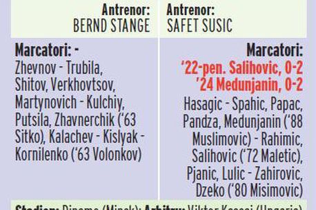 La ora la care România culegea trei puncte în Luxemburg, Bosnia reușea să marcheze două goluri în Belarus, prin Salihovic și Medunjanin, urcând astfel pe locul secund în grupă. Oaspeții au controlat jocul de la un capăt la celălalt și se anunță a fi principalul nostru adversar în lupta pentru locul de baraj.