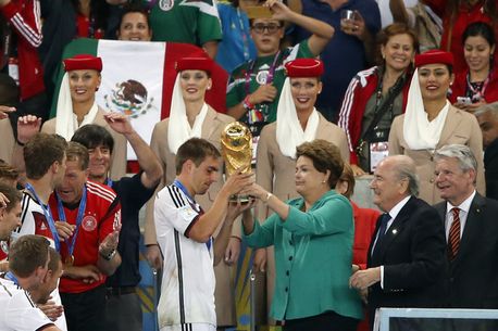 Căpitanul reprezentativei Philipp Lahm a primit trofeul Cupei Mondiale de la președintele FIFA, Joseph Blatter și președinta Braziliei, Dilma Rousseff, duminică seară, pe arena Maracana, din Rio de Janeiro.