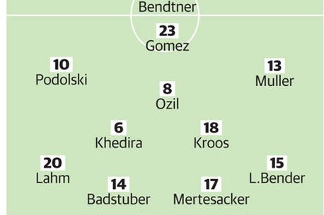 Germania (4-2-3-1): Neuer – Bender, Hummels, Badstuber, Lahm – Khedira, Schweinsteiger – Muller, Ozil, Podolski – Gomez