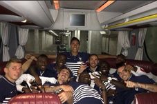9. Echipa Franței, în autocar, imediat după aterizarea în Brazilia. Loc puțin în spate pentru o călătorie, dar suficient pentru o poză