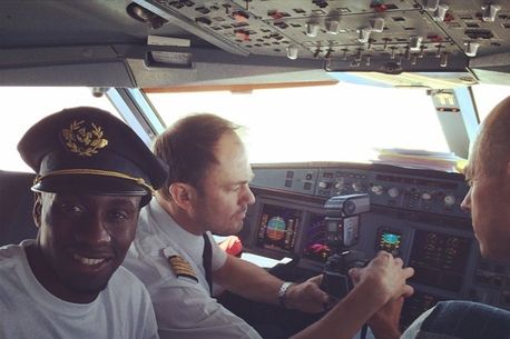 2. Blaise Matuidi, mijlocașul celor de la PSG, și-a făcut poză în cabina piloților. Nu lipsește nici brazuka, mingea oficială a Campionatului Mondial, care a fost semnată de acesta și oferită celor care i-au dus cu bine în Brazilia