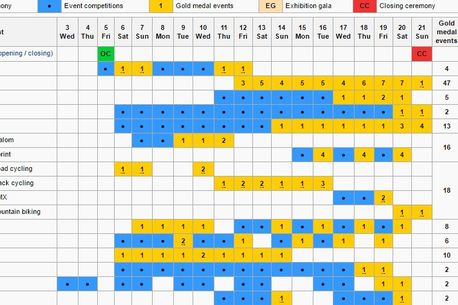 Probele și orele la care se vor decerna medalii sunt următoarele: