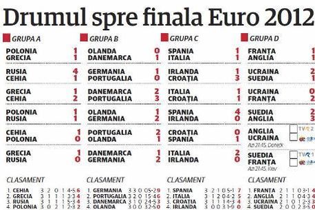 În filmul care s-a disputat în două planuri paralele, la Gdansk și Poznan, și la startul căruia în minutul 1 Italia era eliminată, Spania și-a arătat prima colții. Iniesta a încercat să-l paseze elegant pe Pletikosa, dar portarul croat a parat (12). Croații, bine organizați, au început testele cu apărarea lui Pique și Ramos degrabă. Mandzukic a cerut un penalty la o intervenție a lui Alba (27), dar degeaba. Nici nu-l merita. În schimb, italienii meritau golul și, după ce în minutul 34 le-a fost refuzat un penalty clar la un henț al lui St Ledger după șutul lui Di Natale, Cassano a făcut dreptate nici 60 de secunde mai târziu. Cornerele perfect bătute de Pirlo și-au găsit în sfârșit finalitate când Antonio, decarul Squadrei Azzurra, a trimis elegant cu capul, Given a respins în propria poartă, iar Duff a degajat doar după ce mingea depășise linia. Italia urca două trepte și se cățăra în vârful grupei!