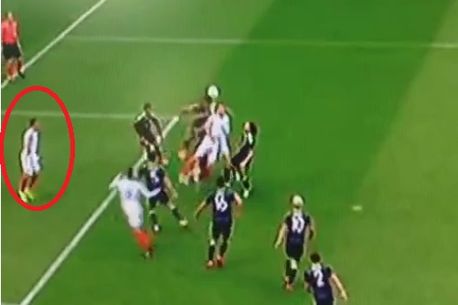 Atacantul lui Leicester ajunge în fața porții și înscrie cu ușurință, însă galezii protestează dur și cer ofsaid. Reluarea arată însă cum mingea e lovită clar de Ashley Williams. Decizia de a valida golul e una corectă și dificilă, în condițiile în care în duelul aerian fuseseră implicați mai mulți jucători de la ambele echipe