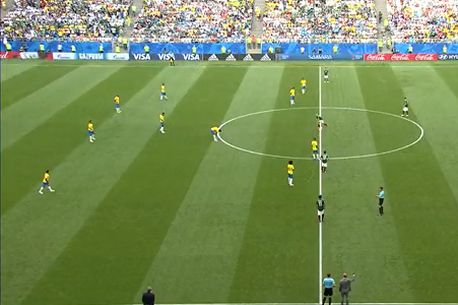 Minutul 19: Casemiro și fundașii brazilieni au recuperat o minge la mijlocul terenului, iar primul a încercat o verticalizare din prima către atacantul Gabriel Jesus, dar balonul a fost blocat în ultima secundă de Rafa Marquez.