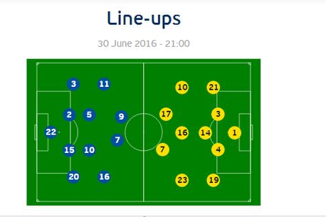 • Portugalia: Rui Patricio – Cedric, Pepe, Fonte, Eliseu – W. Carvalho (Danilo 96) – J. Mario (Quaresma 81), R. Sanches, A. Silva (Moutinho 74) – Nani, Cr. Ronaldo