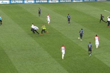 Din câte se pare, cei care au pătruns pe gazon fac parte dintr-o organizație ce ironizează lumea politică din Rusia, iar acțiunea de acum s-a vrut a fi un protest la adresa polițiștilor, ei purtând de altfel ținute ce le copiau pe cele ale forțele de ordine. „Vrem să reamintim cu ocazia Cupei Mondiale că polițiștii care intervin în Rusia pot ajuta, dar dacă intră în joc fără nici o regulă, pot distruge această lume”.