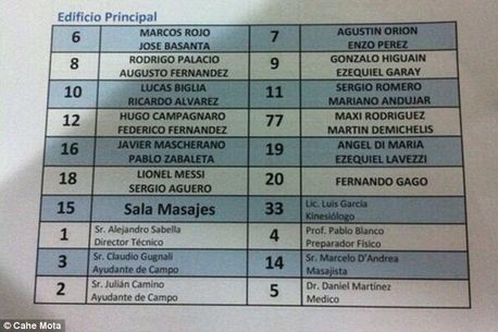 Starul Argentinei, Lionel Messi, va sta în aceeași cameră cu Sergio Aguero pe întreaga durată a Campionatului Mondial, în timp ce Angel di Maria îl va avea coleg pe Lavezzi. Fernando Gago va sta singur în cameră. Dani Alves, coleg cu Messi la Barcelona, și-a ales deja finala la Campionatul Mondial: Brazilia - Argentina
