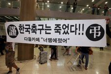 „Fotbalul coreean a murit” este mesajul transmis de banner-ul afișat de fani în aeroport
