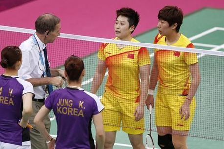 Concret, chinezoaicele Yu Yang și Wang Xiaoli, respectiv coreencele Jung Kyung-eun și Kim Ha-na au vrut să piardă deliberat meciul direct, pentru a beneficia de un culoar favorabil, ulterior. Ambele formații erau deja calificate în sferturile de finală ale competiției și au considerat că un non-combat le va oferi adversari mai slabi cotați, mai departe. În fluierăturile spectatorilor, care erau deja enervați de atitudinea jucătoarelor din China, sud-coreencele au învins, în cele din urmă, doar că pentru toată lumea a fost clar că nu voiau asta. Jung Kyung-eun și Kim Ha-na au câștigat cu 21-14, 21-11, după ce arbitrul a amenințat ambele echipe cu descalificarea.