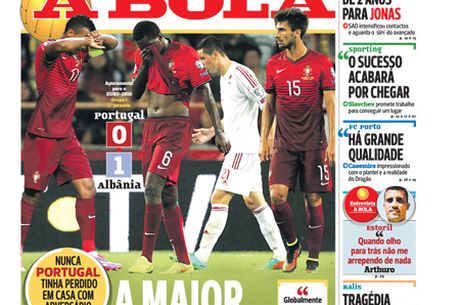 Presa portugheză i-a pus imediat la zid pe jucători și pe selecționer. „Cea mai mare rușine din istoria naționalei”, titrează A Bola, în timp ce O Jojo scrie „Dezastru total”. Record are un titlu simplu și cuprinzător: „Rușine”.