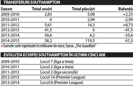 Însă planurile lui Hoftetter au fost acelea de a slăbi echipa prin vânzări masive de jucători. Artizanii reușitei din sezonul trecut, când „sfinții” au terminat pe locul 8 în Premier League, au fost cedați la alte echipe din Anglia. „Lider” la acest capitol a fost Luke Shaw (19 ani), fundașul stânga care a fost cumpărat de Manchester United cu 39,5 milioane de euro. Mijlocașul Adam Lallana (26 de ani) a plecat și el la Liverpool pentru 31 de milioane de euro, în timp ce fundașii Dejan Lovren (25 de ani, vândut pentru 25,3 milioane de euro) și Callum Chambers (19 ani, dat pentru 20,2 milioane euro) au semnat cu Liverpool, respectiv Arsenal. Practic, adăugându-l și pe Rickie Lambert (32 de ani), care a plecat tot la Liverpool, Southampton a pierdut cinci jucători decisivi, în schimbul cărora a încasat, însă, 119,5 milioane de euro, o sumă suficient de mare încât să aducă „sfinții” pe linia de plutire din perspectivă financiară.