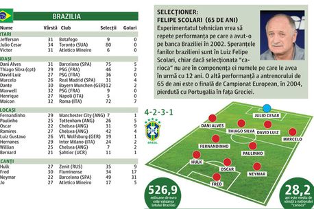 Presiunea este uriașă pe țara gazdă a Mondialului. Suporterii sunt nemulțumiți de cheltuielile uriașe ale statului brazilian, iar 7% dintre brazilienii care au răspuns la un chestionar au spus chiar că nu vor susține echipa la acest turneu final. Din punc de vedere sportiv însă, în acest moment, Brazilia se află într-un moment excelent. Dominoul a pornit în 2012, când Mano Menezes a fost demis, iar în locul său a venit Luiz Felipe Scolari. Experimentatul manager brazilian a schimbat fața echipei, transformând un modul 4-3-3 care nu funcționa într-un 4-2-3-1 mai conservativ, care utilizează un pressing agresiv, dar în care Neymar și Hulk își pot atinge potențialul maxim. Însă asta nu înseamnă că Brazilia nu a păstrat un stil ofensiv, marcând 54 de goluri în mandatul lui Scolari, adică o medie de 2,75 goluri pe meci.