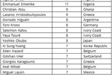 Hulk, Ogenyi Onazi și Emmanuel Emenike sunt la egalitate, pe primul loc al unui clasament care nu le face cinste nici lor, nici naționalelor la care au evoluat. Niciunul dintre cei trei nu a reușit să înscrie vreodată, cu toate că au tras de câte 11 ori la poartă.