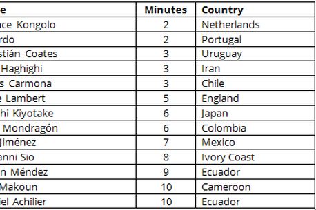 Eduard, jucătorul echipei Șahtior Donețk, a bifat numai două minute la Mondial, el ocupând primul loc în acest top, alături de olandezul Terence Kongolo.