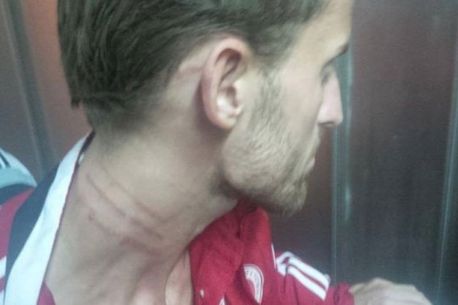 Căpitanul Lorik Cana și colegii săi Taulat Xhaka și Burim Kukeli s-au fotografiat în aeroportul din Belgrad pentru a arăta urmele bătăii cu jucătorii sârbi și forțele de ordine. Imaginile nu mai au nevoie de niciun comentariu.