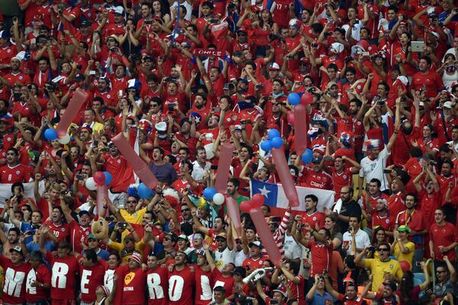 Dacă în afara stadionului suporterii sud-americani au creat panică, pătrunzând în centrul de presă de pe Maracana, în interiorul arenei chilienii au fost exemplari. Legendarele grupuri de fani s-au îmbrăcat în roșu (doar pe teren evolau „La Roja” vs. „Furia Roja”), nici la meciurile Braziliei neexistând o cromatică în care să predomine atât de pregnant o singură culoare. Totuși, ibericii au fost în dezavantaj clar, din estimările presei din Spania pe stadion fiind prezenți aproximativ 50.000 de susținători ai lui Vidal&Co.
