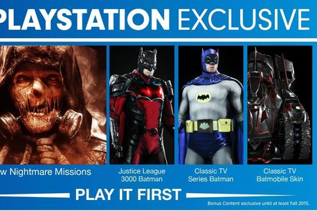 Sony Computer Entertainment a publicat un nou trailer pentru Batman: Arkham Knight, acesta oferind detalii suplimentare despre ce conținut exclusiv va fi inclus în versiunea pentru PlayStation 4 a jocului. Era știut de ceva vreme că ediția pentru PlayStation 4 a jocului va include setul de misiuni exclusive Scarecrow Nightmare Pack, însă, prin intermediul acestui trailer, au fost dezvăluite doua astfel de bonusuri noi.