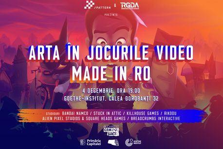 Vernisajul expoziției Arta în Jocurile Video Made in RO va avea loc marți, 4 decembrie, de la ora 19:00 la Goethe-Institut, Pavilionul 32 (Calea Dorobanți nr. 32). Expoziția, care va fi deschisă până sâmbătă, 8 decembrie, are scopul de a scoate în evidență talentul artiștilor români care lucrează în studiourile de gaming din România. Publicul va putea admira peste 25 de lucrări realizate pentru jocuri românești precum Door Kickers Action Squad și Door Kickers 2, Gibbous: A Cthulhu Adventure, Unbound, Yaga, Second Hand: Frankie”s Revenge sau Outcast Oddysey. Artiștii expozanți vor fi Adrian Crucean, Elias Frost și Andi Bogaciev (KillHouse Games), Liviu Boar (Stuck In Attic), Olga Ciob (Alien Pixel Studios & Square Heads Games), Flaviu Haitonic & Alexandru Munteanu (Breadcrumbs Interactive), Cosmin Podar & Gabriel Tanko (Rikodu) și Alexandra Ujeucă și Cosmin Genete (Bandai Namco).