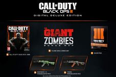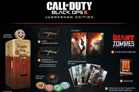 Tot la San Diego Comic-Con 2015, Activision a anunțat și Call of Duty: Black Ops III Juggernog Collector”s Edition, o ediție de colecție specială, dedicata celor mai mari fani Call of Duty Zombies. Juggernog Collector”s Edition include un mini-frigider funcțional modelat după dozatorul Juggernog Perk-a-Cola din Call of Duty Zombies, Call of Duty: Black Ops III Season Pass, precum și harta The Giant, un remake al hărții Der Rise, una din favoritele fanilor Zombies. Edițiile Call of Duty: Black Ops III Hardened Edition și Digital Deluxe Edition includ, de asemenea, harta The Giant.