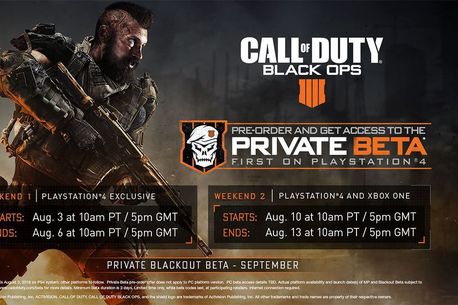 În acest weekend, pe PlayStation 4, va debuta beta test-ul pentru componenta multiplayer din Call of Duty: Black Ops 4. Programul complet al acestui beta, precum și ordinea în care acesta va deveni disponibil pe restul platformelor, pot fi consultate aici.
