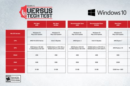 Studioul The Coalition, ce aparține celor de la Microsoft, a anunțat că va susține două sesiuni de testare pentru viitorul joc Gears 5. Botezate „Techical Tests”, acestea se vor desfășura pe PC, cei de la The Coalition dezvăluind astfel și cerințele de sistem necesare pentru a putea rula, în mod corespunzător, aceste versiuni beta ale jocului. Specificațiile pot fi consultate în tabelul de mai jos.