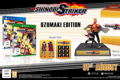 Ediția jocului destinată colecționarilor – Naruto To Boruto: Shinobi Striker Uzumaki Edition – include, pe lângă jocul de bază pentru PlayStation 4 sau Xbox One, Season Pass-ul și o statuetă care îi înfățișează pe Naruto și pe Boruto, tată și fiu. Season Pass-ul va include nouă pachete DLC suplimentare și accesoriul special Great Sages of the Mount Myouboku.