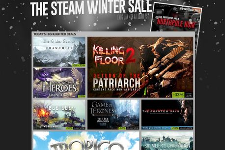 Pe pagina principală a serviciului Steam veți găsi, printre jocurile aflate la reducere, titluri precum cele din seriile Sid Meier”s Civilization, The Elder Scrolls, Heroes of Might & Magic, Tropico, The Witcher și multe, multe altele, la prețuri reduse cu până la 85%.