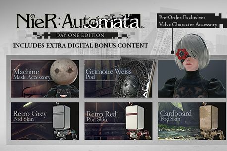 Precomanda pentru Nier Automata Day 1 Edition este disponibilă chiar acum pe Steam, la un preț de 59,99€, aceasta oferind și bonusurile din imaginea de mai jos. De asemenea, au fost dezvăluite și cerințele de sistem oficiale pentru versiunea de PC a lui Nier Automata.