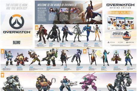 Posterul exclusiv oferit în cutia de precomandă Overwatch, ale cărui fețe pot fi admirate în imaginile de mai jos, furnizează informații în legătură cu toți cei 21 de eroi disponibili în joc, în timp ce fluturașul printat inclus prezintă pașii necesari pentru a obține cele două coduri de early access la beta-ul Overwatch, în perioada 3-4 mai.