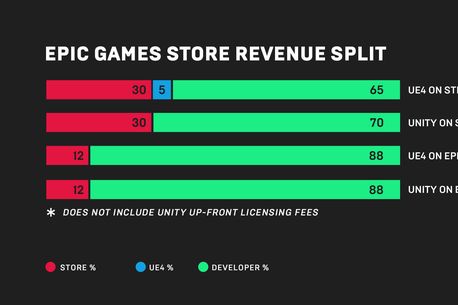 Aceste modificări nu ajută însă prea mult producătorii independenți, contraoferta celor de la Epic Games fiind adresată, în primul rând, acestora. Astfel, cei care aleg să-și publice jocurile prin intermediul noului Epic Games Store vor primi nu mai puțin de 88% din încasările generate de jocurile lor, cei de la Epic mulțumindu-se cu 12% din vânzări. De asemenea, dacă un producător alege să publice un joc realizat cu ajutorul Unreal Engine prin intermediul Epic Games Store, cei de la Epic renunță la cota de 5% din vânzari pe care o percepeau în cazul în care respectivul joc era publicat prin intermediul Steam. Cu alte cuvinte, acești producători vor putea folosi Unreal Engine complet gratuit, dacă optează pentru distribuția jocului rezultat prin intermediul Epic Games Store. Evident, jocurile publicate prin Epic Games Store nu vor fi limitate doar la cele create cu Unreal Engine, cei de la Epic Games confirmând că serviciul va putea include titluri bazate pe orice alt motor grafic.