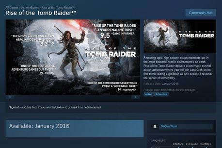 Iată că astăzi misterul începe să dispară aproape în totalitate: tocmai a fost deschisă pagina oficială a jocului Rise of The Tomb Raider pe Steam, aceasta confirmând ceea ce bănuiam cu toții: jocul celor de la Crystal Dynamics va fi lansat foarte curând și pentru PC. Conform listării de pe Steam, Rise of The Tomb Raider va fi disponibil pe această platformă undeva în cursul lunii ianuarie 2016.