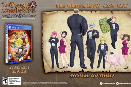 Cei care optează pentru o precomandă vor beneficia de un bonus care include, printre altele, un set de costume formale exclusive pentru eroii: Meliodas, Ban, King, Hawk, Diane, Escanor, Gowther și Merlin.