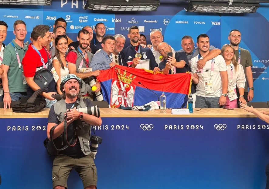 Jurnaliștii sârbi n-au ratat ocazia unei fotografii de colecție cu Novak Djokovic, proaspăt campion olimpic la Paris, după ce l-a eliminat și pe Rafael Nadal pe parcursul competiției.
