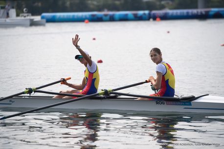 Canotoarele Gianina van Groningen și Ionela Cozmiuc au urcat pe treapta a doua a podiumului la dublu vâsle, după britanicele Emily Craig și Imogen Grant.