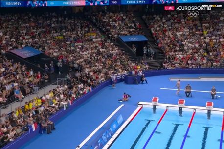 Un bărbat necunoscut, aparent un potențial suporter din tribune, s-a lăsat în costum de baie, s-a plimbat câteva secunde pe marginea bazinului și apoi a sărit nestingherit în acesta. Respectivul a înotat câteva secunde, după care a părăsit zona de concurs și le-a lăsat pe fete să se pregătească pentru proba de 100 de metri bras de la Jocurile Olimpice. Interesant este faptul că în tot acest timp, autoritățile franceze nu au reacționat în niciun fel, lăsându-l practic pe bărbat să își facă de cap.