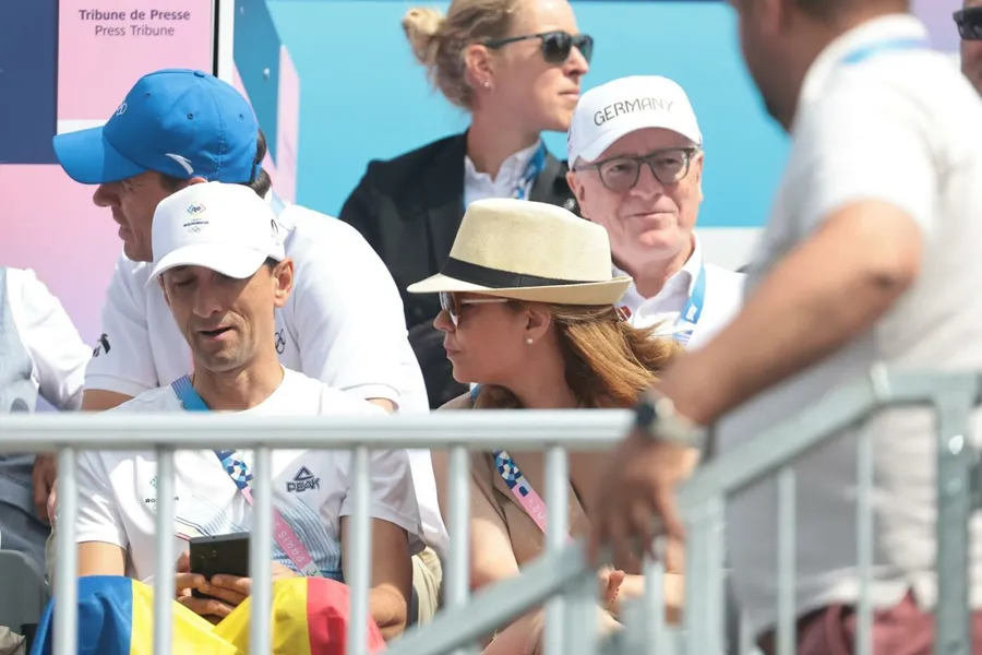 Discret, demnitarul neamț a privit dintr-un colț sesiunea de canotaj, fiind fanul conaționalului său, Sebastian Brendel, care a câștigat seria.