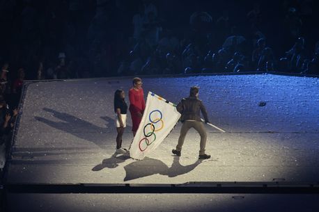 Însă, de departe, cel mai spectaculos moment a fost apariția actorului american Tom Cruise. Acesta a coborât în rapel, de pe acoperișul stadionului, direct în mijlocul sportivilor, apoi a preluat steagul olimpic și a plecat pe o motocicletă.