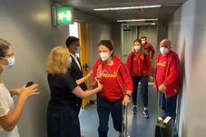 La aterizarea pe Aeroportul Internațional „Henri Coandă”, Carol Eduard Novak a fost primul care a întâmpinat delegația României de scrimă.