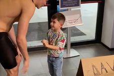 Mămica a văzut că băiatul său s-a emoționat și l-a îndemnat să se apropie de David Popovici: „Hai, ia-l în brațe”. „Lăsați-l dacă vrea să mă ia, dacă nu, nu”, a fost reacția sportivului.