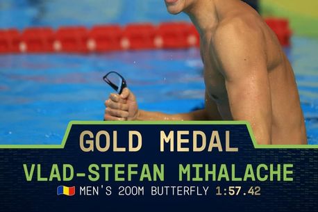 Din spate vin și alți tineri, printre ei și Vlad Mihalache, 18 ani, campion european de juniori anul trecut la Vilnius în proba de 200 metri fluture.