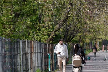 Ba chiar la un moment dat, Adrian Petre era atât de prins într-o discuție prin mesaje încât soția sa a luat-o cu căruciorul în față, lăsându-l pe fostul vârf al lui Gigi Becali la câțiva metri în spate.
