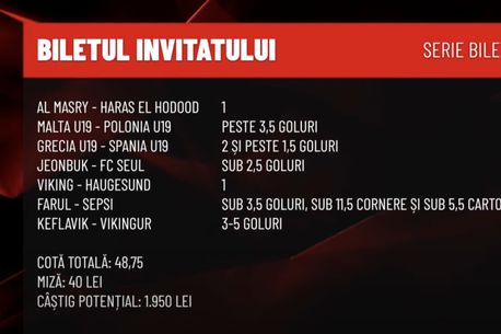 Biletul invitatului Dacian Varga, prezentat în cadrul celei mai recente ediții de Pariologia, propune un total de șapte partide, ce însumează o cotă totală de 48,75.