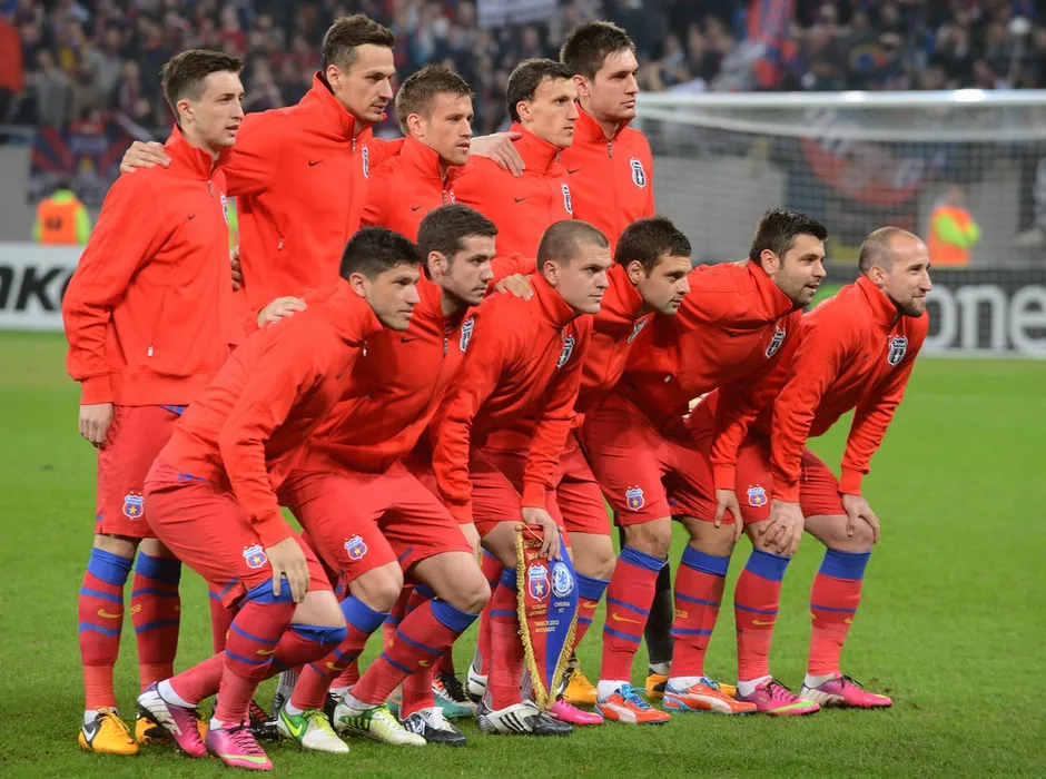 Group photo of Steaua Bucharest prior to the match against Chelsea during UEFA Europa League football match in Bucharest March 7, 2013. AFP PHOTO DANIEL MIHAILESCU,Image: 155510651, License: Rights-managed, Restrictions: , Model Release: no