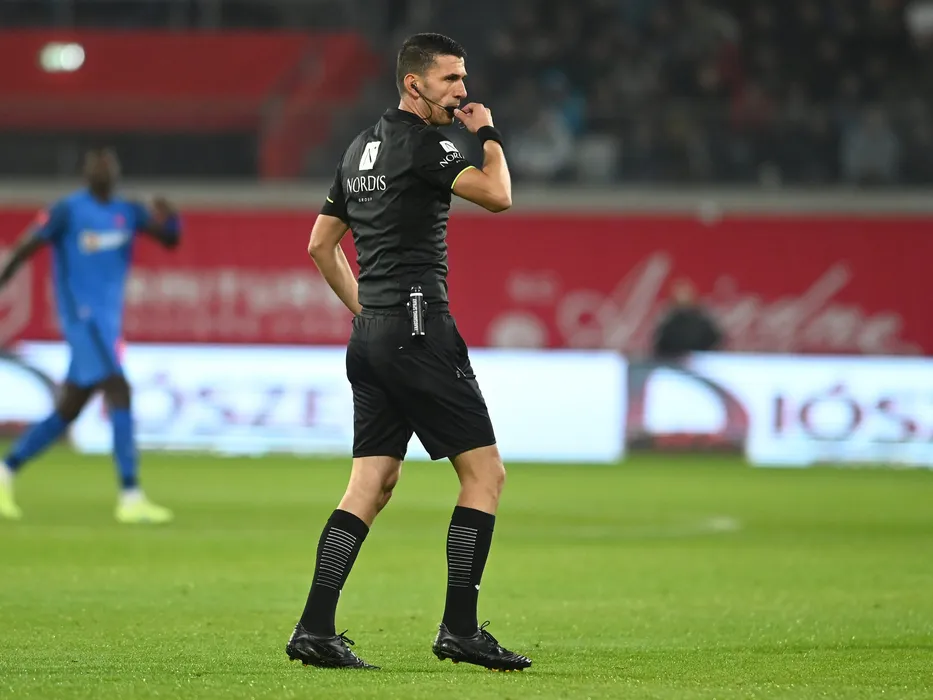 Arbitrul central Marcel Birsan reactioneaza in meciul de fotbal dintre Sepsi OSK Sfantu Gheorghe si FCSB, contand pentru Superliga Superbet, desfasurat pe Sepsi Arena din Sfantu Gheorghe, luni 24 octombrie 2022. © FOTO:Razvan Pasarica/SPORT PICTURES
